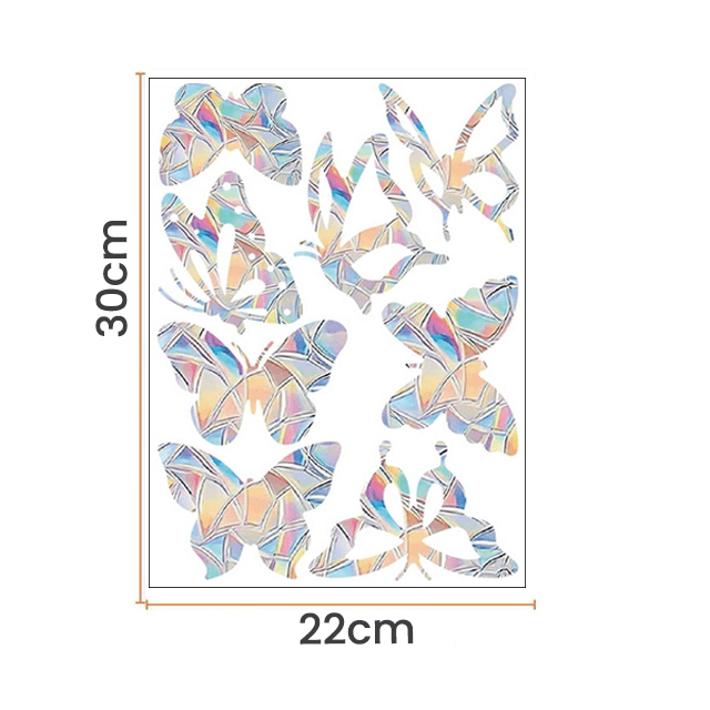 Os adesivos direcionam os reflexos solares refletidos através do vidro para alertar os pássaros e impedir que machuquem-se batendo nas portas e janelas de vidro.