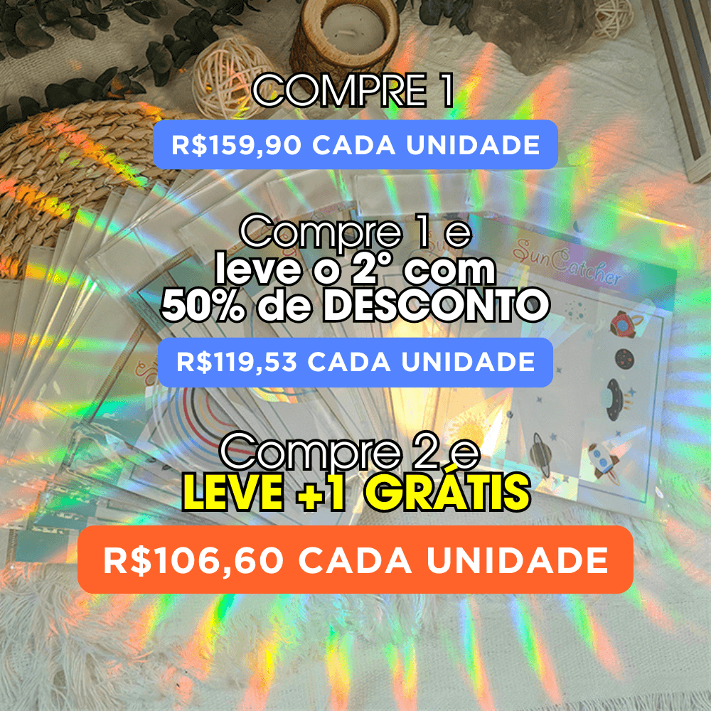Bem-vindo à Cores do Sol, onde criamos produtos que transformam a Luz Solar em um lindo arco-íris, tudo o que você precisa fazer é colar na janela e observar como o seu espaço se transforma em um País das Maravilhas Mágico com a Sinfonia das Cores do Sol.