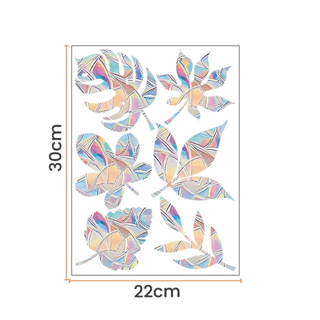 Os adesivos direcionam os reflexos solares refletidos através do vidro para alertar os pássaros e impedir que machuquem-se batendo nas portas e janelas de vidro.