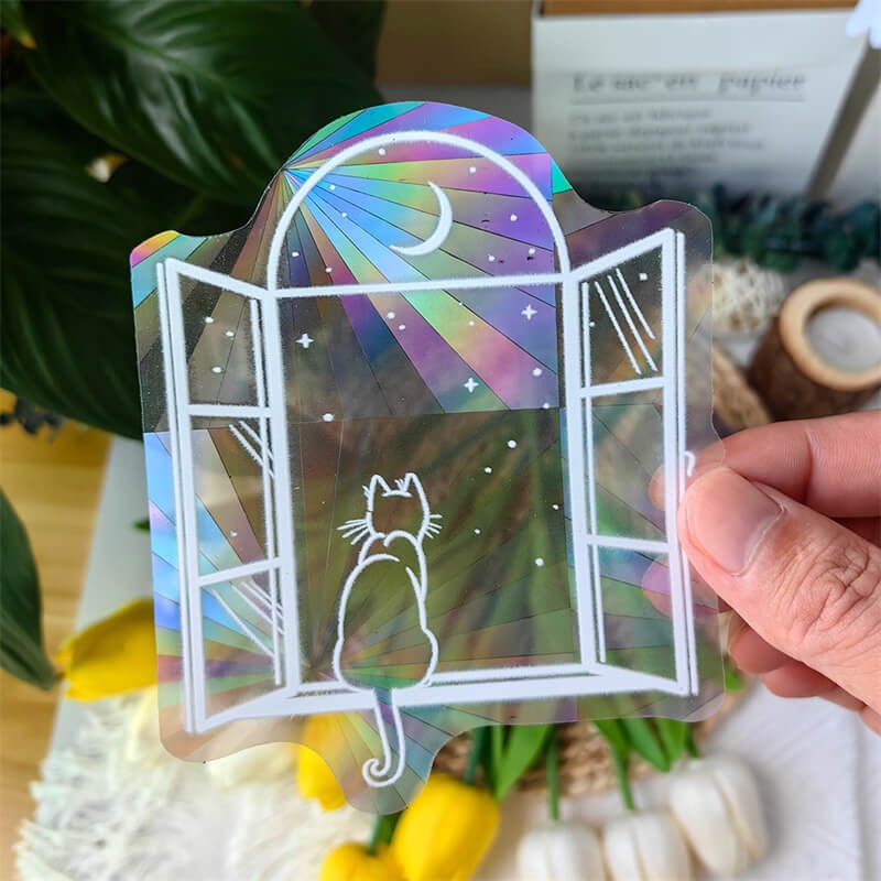 Os adesivos direcionam os reflexos solares refletidos através do vidro para alertar os pássaros e impedir que machuquem-se batendo nas portas e janelas de vidro.