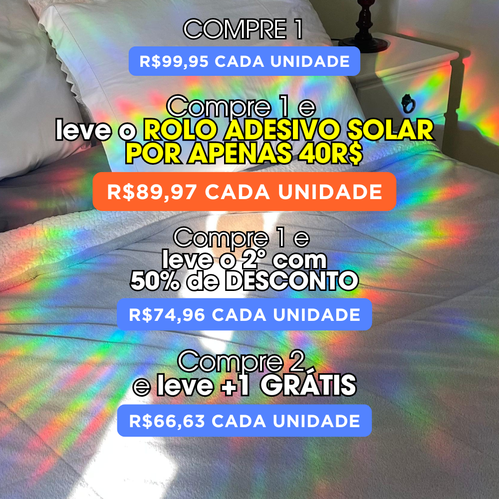 Os Adesivos Solares são objetos de cura usados no Feng Shui, as cores do arco-íris despertam boas emoções e ativam o alto astral, estimulando a criatividade e atraindo felicidade!