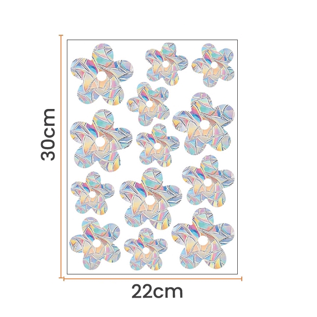 Os adesivos direcionam os reflexos solares refletidos através do vidro para alertar os pássaros e impedir que machuquem-se batendo nas portas e janelas de vidro.