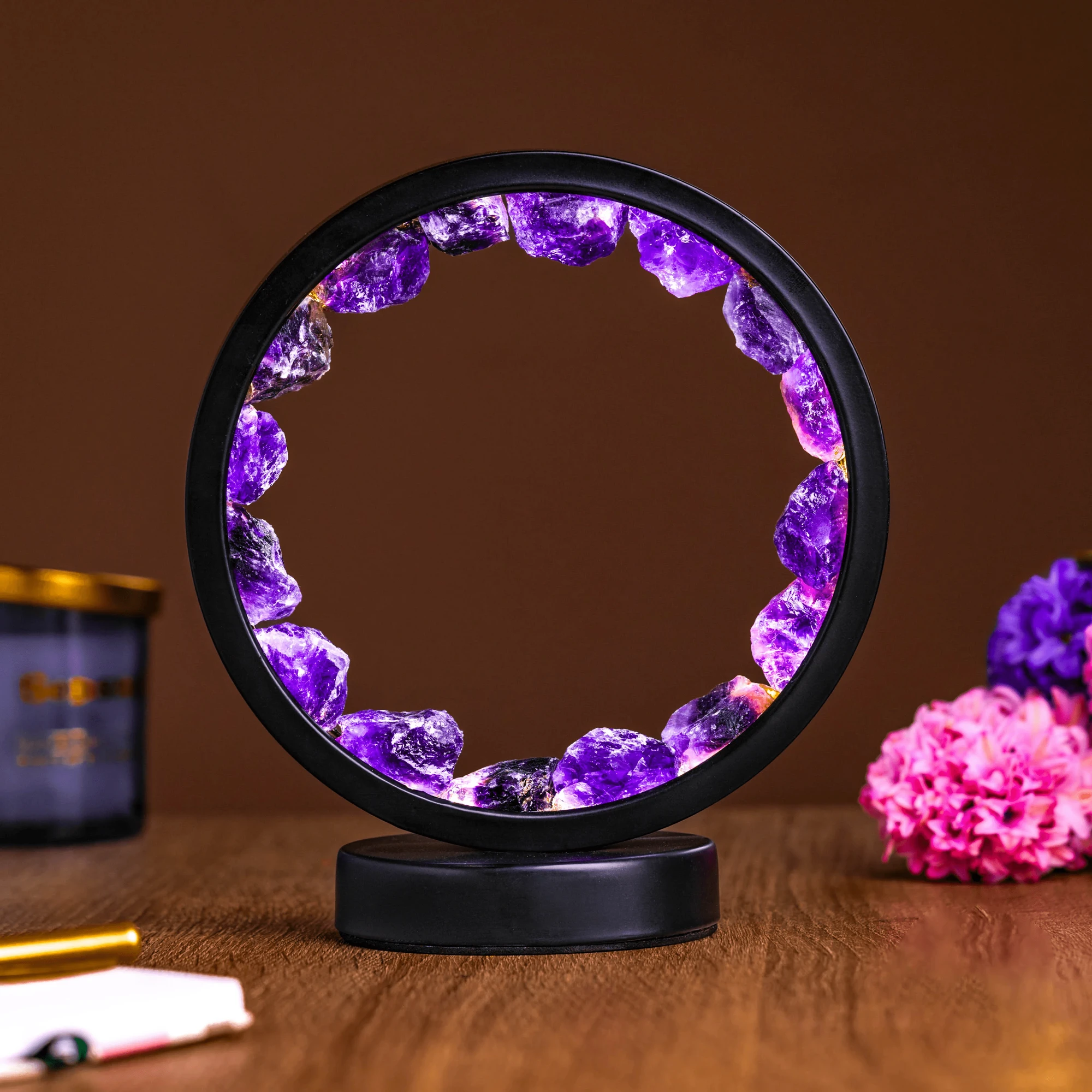 Transforme qualquer espaço em Local de Paz, cheio de energia sagrada da Luminária de Halo Ametista, além da beleza das pedras naturais, a Ametista é conhecida por acalmar a alma, despertar a intuição e trazer uma sensação reconfortante de confiança e paz com o mundo ao seu redor, trazendo uma sensação de conforto que ressoa a mente, corpo e espírito.