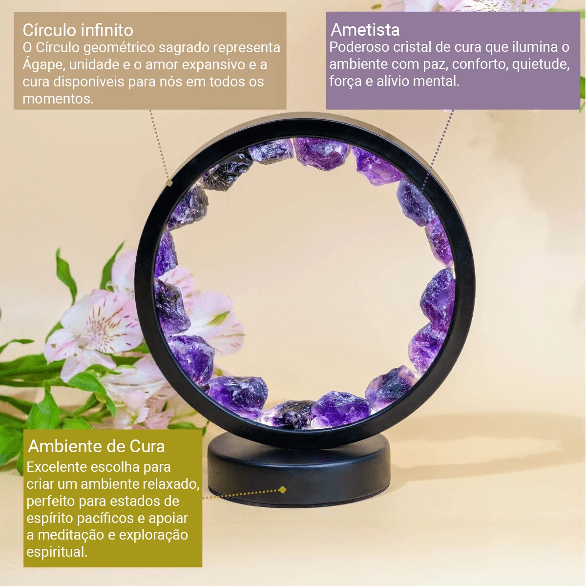A Luminária Halo Ametista foi criada para encorajar uma conexão mais profunda com seu eu interior, criando uma atmosfera pacífica e harmoniosa. É uma excelente escolha para criar um ambiente relaxado, perfeito para estados de espírito pacíficos e apoiar a meditação e a exploração espiritual.